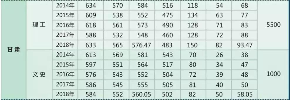 蘭州大學普通招生往年在甘肅錄取情況
