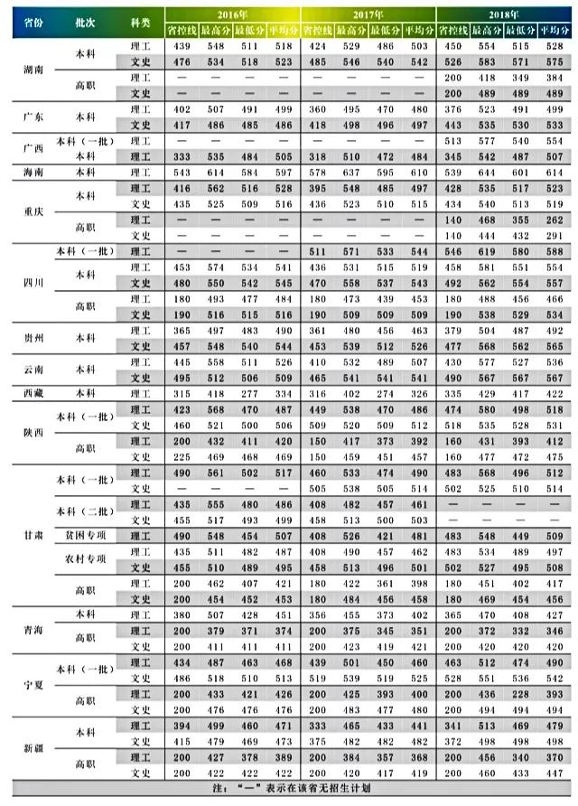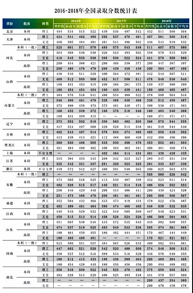 蘭州交通大學2016-2018年全國錄取分數統計