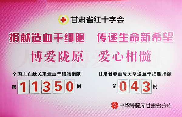 造血干細胞移植是當今治療白血病等惡性難治性疾病最有效的臨床技術,由于非血緣人群中配型相合率非常低,通常配型相合率僅有萬分之一到十萬分之一。目前,中華骨髓庫有295萬余名志愿者,實現捐獻11350人。中華骨髓庫甘肅省分庫志愿捐獻者已達4.2萬余人,已有43位志愿捐獻者成功捐獻了造血干細胞。