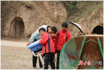 沿著水泥路走下去,就到了東鄉(xiāng)縣五家鄉(xiāng)馬場村的馬場小學。這里是孩子們學習的地方,也是寄托著東鄉(xiāng)族理想的希望之地。常蓬浩三人每天都要來到學校,與校長討論學校的教學樓建設,向老師詢問孩子們的學習狀況,一起探討如何提升教學質量、促進孩子們健康成長。
