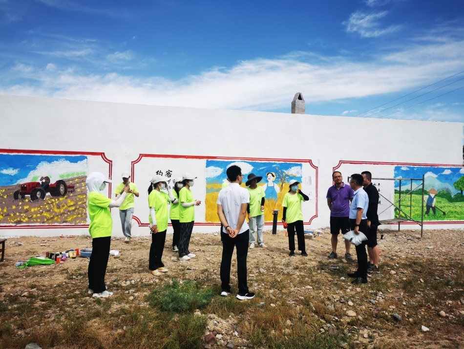 設計藝術學院、材料學院“鄉村微景觀”社會實踐團赴甘肅省金昌市金川區寧遠堡鎮東灣村、雙灣鎮龍寨村、天生炕村,開展美麗鄉村“微景觀”實踐活動。通過對鄉村邊角地塊、房前屋后、街頭巷尾閑置的主要墻面進行設計制作,繪制鄉村振興主題墻繪,創建既有“顏值”又有“內涵”的鄉村微景觀,助推美麗鄉村建設。