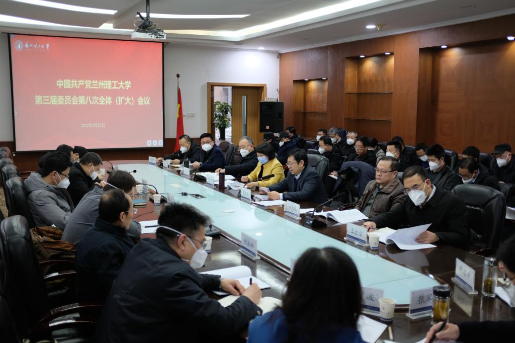 2月20日,中共蘭州理工大學(xué)第三屆委員會第八次全體(擴(kuò)大)會議在蘭工坪校區(qū)逸夫科技館三號會議室召開。會議學(xué)習(xí)了黨的二十大精神和《中共甘肅省委關(guān)于深入學(xué)習(xí)宣傳貫徹黨的二十大精神全面建設(shè)社會主義現(xiàn)代化幸福美好新甘肅的決定》,聽取并審議了2022年黨委常委會工作報(bào)告、紀(jì)委工作報(bào)告,安排了2023年學(xué)校重點(diǎn)工作,審議《中共蘭州理工大學(xué)第三屆委員會第八次全體(擴(kuò)大)會議決議(草案)》。校黨委委員參加會議,校紀(jì)委委員,各單位、部門負(fù)責(zé)人列席會議。會議由學(xué)校黨委書記夏天東主持。