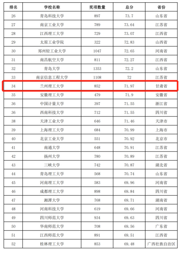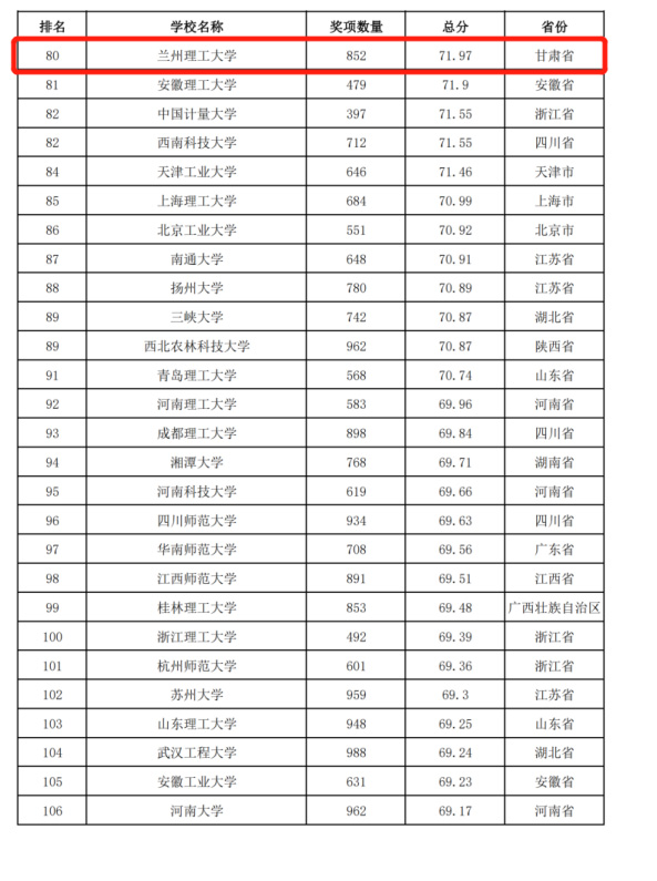2022年全國普通高校大學生競賽榜單(本科,TOP100)