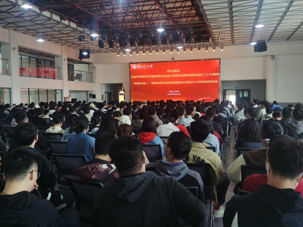 為進(jìn)一步深入開展學(xué)習(xí)貫徹習(xí)近平新時代中國特色社會主義思想主題教育和黨的二十大精神,4月25日上午,學(xué)校在蘭工坪校區(qū)大學(xué)生活動中心舉行“青春引路人”輔導(dǎo)員理論宣講團(tuán)授旗儀式暨2023年首場宣講會,學(xué)校黨委副書記丁虎生出席大會并講話,學(xué)生工作部、材料學(xué)院、能動學(xué)院學(xué)生工作負(fù)責(zé)人、“青春引路人”輔導(dǎo)員理論宣講團(tuán)全體成員和學(xué)生代表300余人參會。