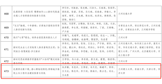 近日,教育部發布《教育部關于批準2022年國家級教學成果獎獲獎項目的決定》(教師〔2023〕4號)。我校朱彥鵬教授主持的項目《扎根西北數十載,潛心耕耘創特色:西部地方高校土木工程專業建設探索與實踐》榮獲2022年高等教育(本科)國家級教學成果獎二等獎,是我校國家級高等教育教學成果獎重大突破,標志著我校的本科教育教學研究與實踐水平再上新臺階。