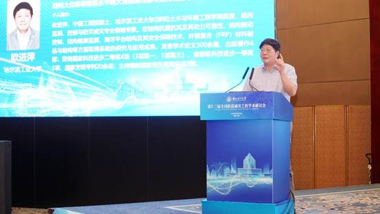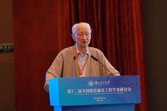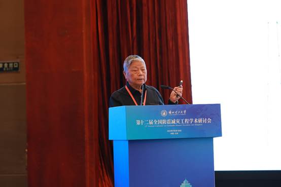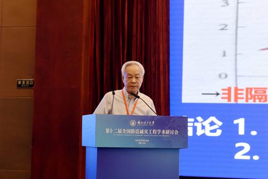 歐進萍院士作題為“結構大位移摩擦擺水平超大震隔震性能與豎向隔震問題——兼談振-震雙控”的大會主旨報告