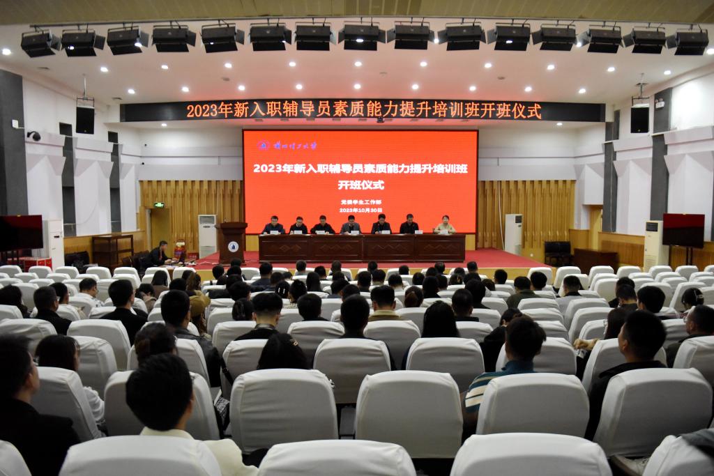 為深入學習貫徹習近平新時代中國特色社會主義思想和全國高校思想政治工作會議精神,全方位幫助新入職輔導員盡快完成角色轉變,適應崗位需求,提升工作能力,10月30日下午,學校在逸夫科技館二樓報告廳舉行了2023年新入職輔導員素質能力提升培訓班開班儀式。學校黨委副書記丁虎生出席開班儀式,黨委組織部、黨委教師工作部、黨委學生工作部、學生就業指導服務中心、校團委負責人,學工部相關干部、各學院黨委副書記和全體輔導員參加了活動。開班儀式由黨委學生工作部部長、學生處處長王正民主持。