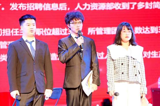 各參賽隊伍圍繞賽前組委會公布的主題和框架,結(jié)合人力資源管理專業(yè)知識,對人力資源人員招聘、勞動爭議、績效反饋面談等核心職業(yè)情景進行分析設(shè)計,并通過團隊角色扮演的方式進行演繹。