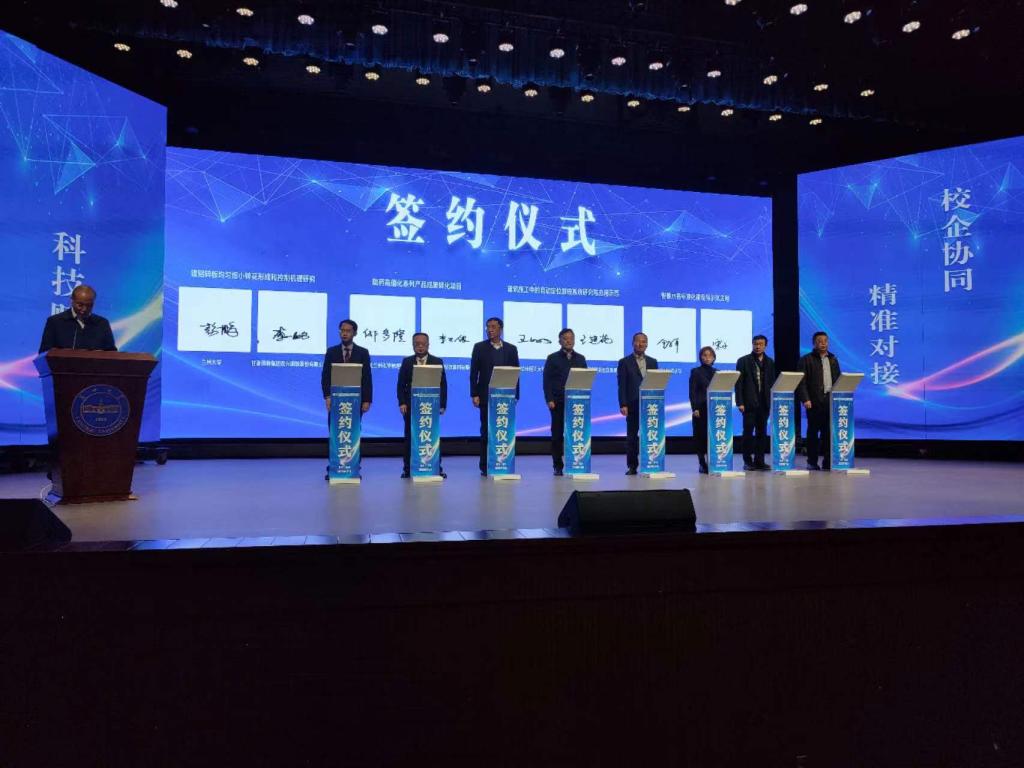 活動現場上,材料學院與文縣寧氏礦業有限公司簽訂了“基于射線的重晶石選礦技術及設備開發研究”項目合作協議;電信學院與甘肅新發展城市開發建設運營管理公司簽訂了“建筑施工中的自動定位放線系統研究與應用示范”項目合作協議;科技處做了題為“發揮理工科特色優勢 助力甘肅省工業經濟高質量發展”科技成果發布報告。