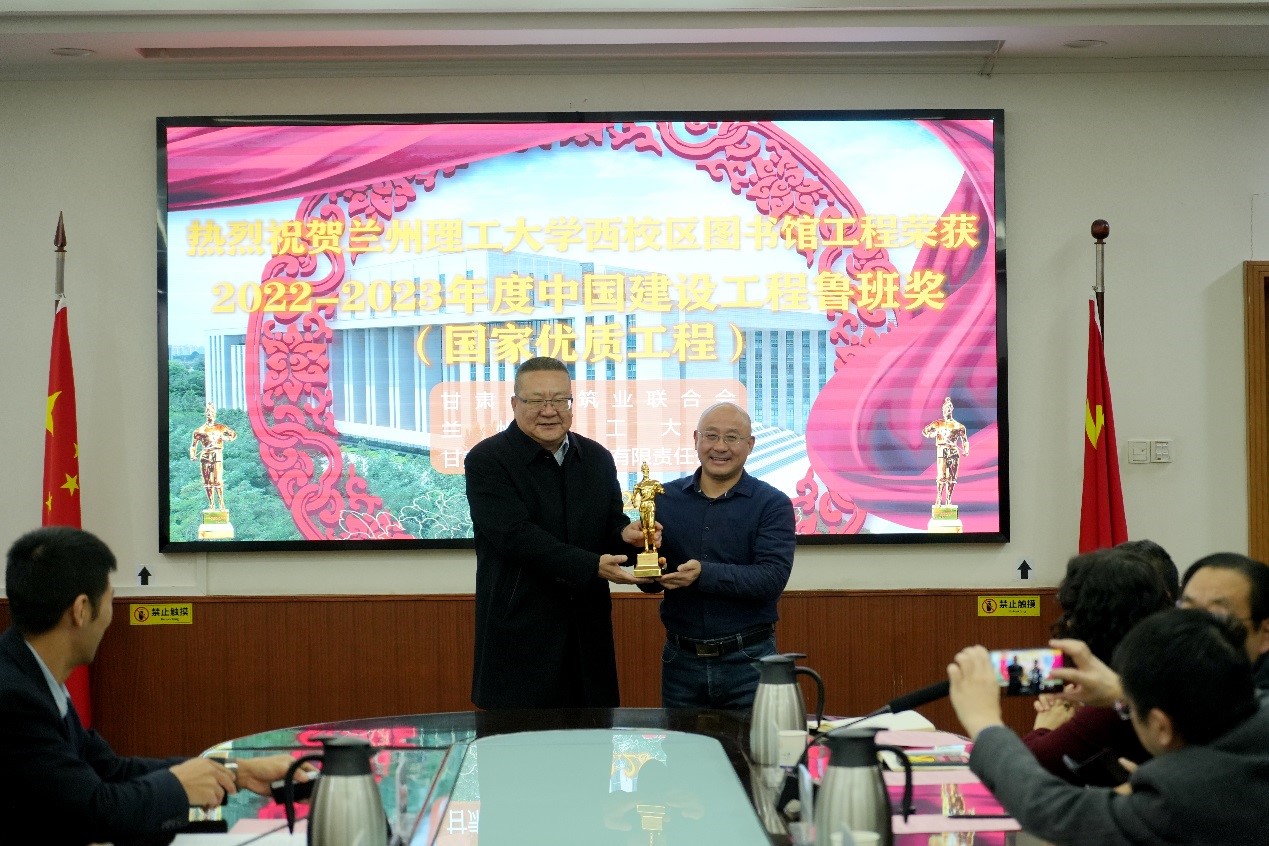 近日,蘭州理工大學彭家坪校區圖書館項目榮獲“中國建設工程魯班獎”,甘肅省建筑業聯合會發來賀信并于2023年12月28日來訪我校,在蘭工坪校區逸夫科技館3號會議室開展喜獲“魯班獎”座談會。學校黨委常委、副校長彭珍瑞,甘肅省建筑業聯合會監事會主席蔡林崢,甘肅省建筑業聯合會副秘書長吳娜,甘肅第一建設集團有限責任公司黨委書記、董事長閆汝剛及相關負責人,學校宣傳部、發展規劃處、基建規劃處、后勤管理處、國有資產管理處、土木工程學院及圖書館相關負責人參加座談會。座談會由彭珍瑞主持。