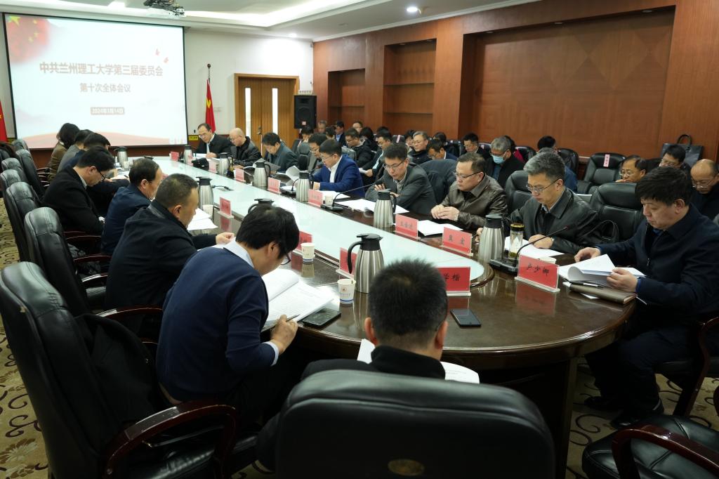3月14日,中共蘭州理工大學第三屆委員會第十次全體(擴大)會議在蘭工坪校區逸夫科技館3號會議室召開。會議學習了習近平總書記在全國兩會期間發表的重要講話精神、十四屆全國人大二次會議精神、全國政協十四屆二次會議精神、3月13日省委常委會會議精神。聽取并審議通過了2023年黨委常委會工作報告、校長工作報告、紀委工作報告以及關于啟動中國共產黨蘭州理工大學第四次代表大會籌備工作的報告,表決通過了《中共蘭州理工大學第三屆委員會第十次全體會議決議》。校黨委委員參加會議,黨外校領導、校紀委委員、各單位負責人、黨員代表列席會議。會議由黨委書記夏天東主持。