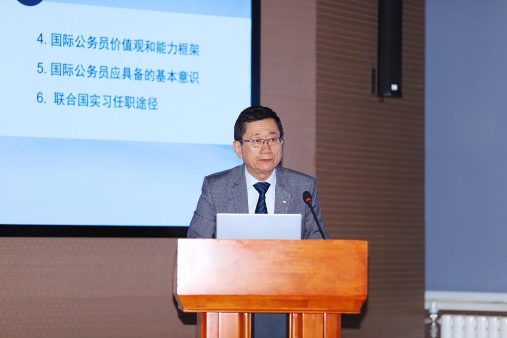 王紀元結合自身豐富工作經歷和實踐經驗,詳細介紹了聯合國國際公務員制度、職務分類、雇員素質要求、雇傭標準、遴選程序等,重點解讀了競聘國際公務員的途徑和攻略。他表示,高校作為高素質青年人才的匯集地,要積極服務國家“一帶一路”倡議,加強國際組織人才培養,為推進中國式現代化建設提供人才支撐。他希望我省高校重視國際組織任職、實習等工作,立足培養具有國際視野、勝任國際組織工作的高素質人才,增進學生對國際組織和全球參與的理解,培養有志于到國際組織工作的后備人才,進一步提高學校人才培養的國際化與競爭力,提升我國在國際組織話語權。