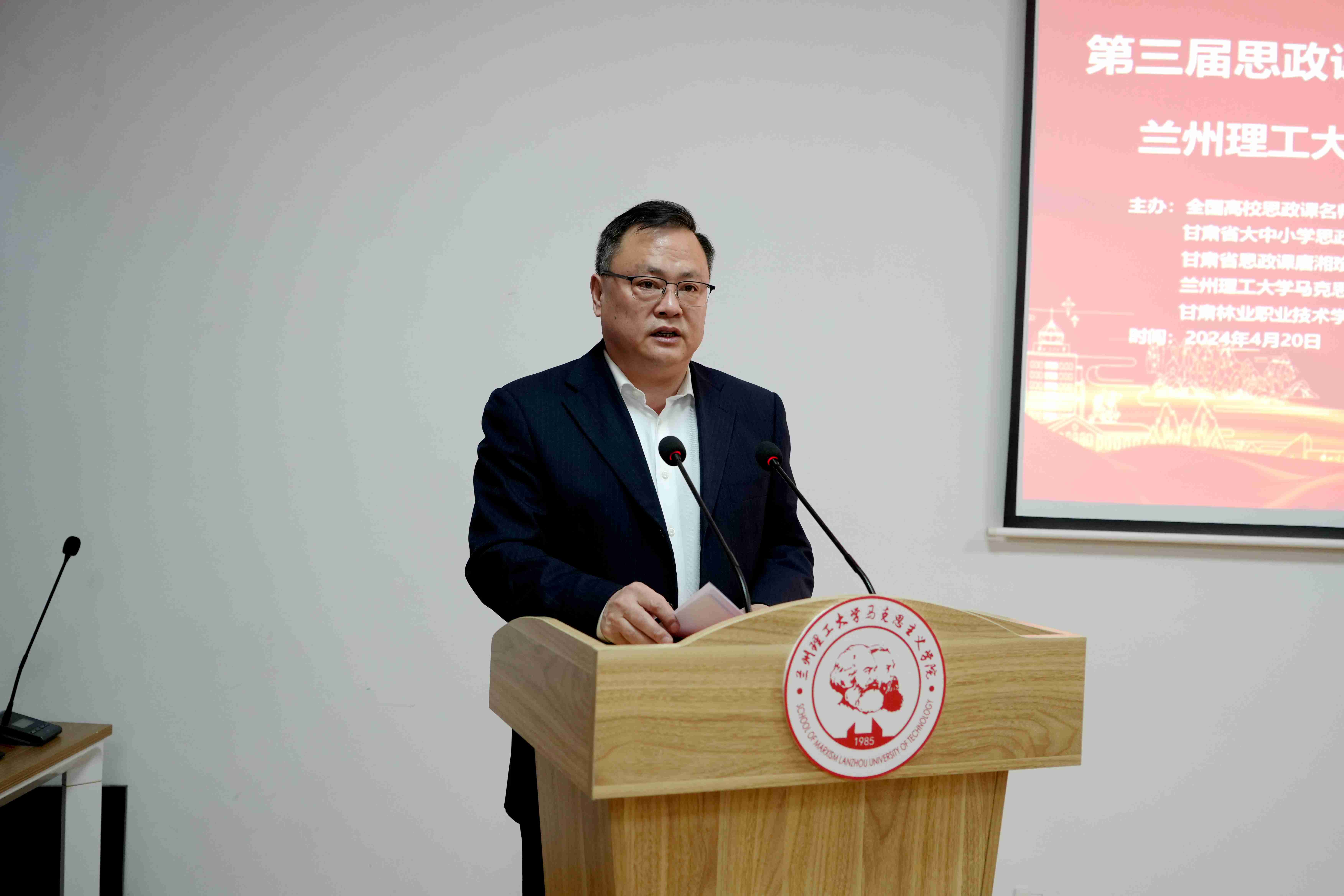 為了進一步貫徹落實習近平總書記在學校思想政治理論課教師座談會上的講話精神,深入推進思政課教學改革守正創新。2024年4月19日,由全國高校思政課名師工作室(蘭州理工大學),甘肅省大中小學思政課一體化建設委員會“思想道德與法治”課分教指委,甘肅省思政課唐湘珍名師工作室、郭三龍名師工作室、宋利萍名師工作室,蘭州理工大學、甘肅醫學院、蘭州信息科技學院、甘肅林業職業技術學院、蘭州現代職業學院馬克思主義學院聯合舉辦的第三屆思政課教師“跨校大練兵”教學比賽在蘭州理工大學彭家坪校區舉行。