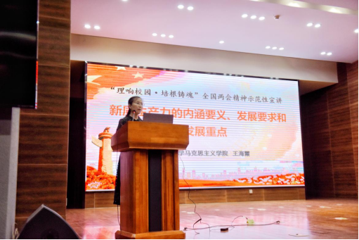 宣講團組長、我校馬克思主義學院教授王海霞以《新質生產力的內涵要義、發展要求和發展重點》為題,通過多個鮮活的案例深入闡釋了新質生產力的理論內涵及核心要義,緊扣社會熱點,將理論轉化為知識點,為在場的學子帶來很多啟發。