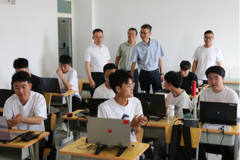 焦樹強深入教室看望正在做畢業設計的大四同學,鼓勵大家綜合運用所學知識全力做好設計,順利完成大學學業。