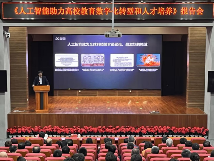 座談會(huì)前,陳紅斌以“人工智能助力高校教育數(shù)字化轉(zhuǎn)型與人才培養(yǎng)”為題作了報(bào)告,詳細(xì)闡述了人工智能技術(shù)特別是大模型的技術(shù)進(jìn)展與典型應(yīng)用,并著重介紹了科大訊飛人工智能技術(shù)在高校教育教學(xué)、科研創(chuàng)新、人才培養(yǎng)、校園服務(wù)等核心場(chǎng)景的最新應(yīng)用成果與實(shí)踐。各學(xué)院負(fù)責(zé)人、數(shù)智校園負(fù)責(zé)人及計(jì)算機(jī)與通信學(xué)院、電氣工程與信息工程學(xué)院、機(jī)電工程學(xué)院的師生代表共200余人參加了報(bào)告會(huì)。(圖/文:韓澤宇;審核:李策)