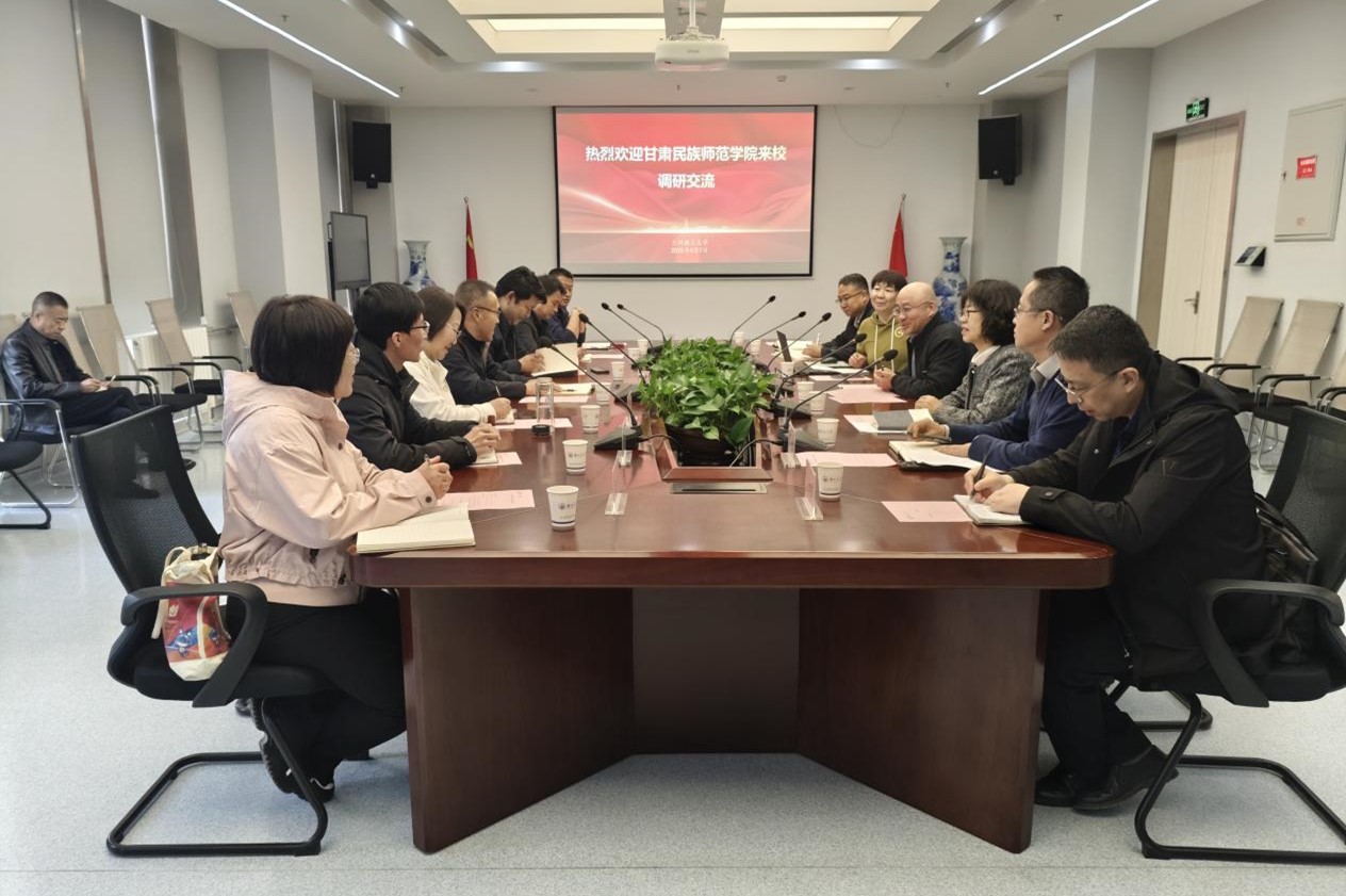 4月7日上午,甘肅民族師范學(xué)院黨委委員、副校長(zhǎng)牛永有一行來(lái)我校調(diào)研座談。座談會(huì)由學(xué)校黨委常委、副校長(zhǎng)彭珍瑞主持。