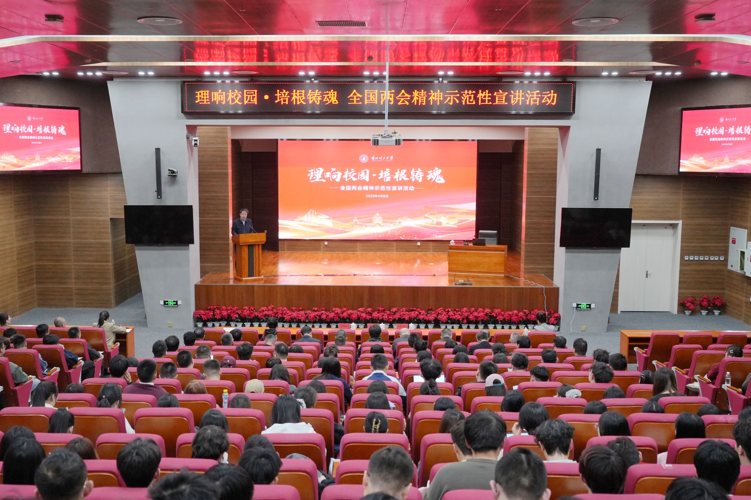 此次宣講緊扣主題、重點突出、內容豐富、立意深遠,既體現了政治高度、理論深度,又體現了情感溫度、實踐廣度。以深沉的文化自信為底座,清醒的道路自信、理論自信、制度自信為支柱,以深厚的經濟學理論修養為建材,構筑了“兩會”精神專題講座的四梁八柱,以豐沛的愛國熱情為主旋律,把學習宣傳貫徹全國兩會精神不斷引向深入。學校將以此次宣講為契機,全面準確把握全國兩會精神的核心要義和豐富內涵,聚焦《教育強國建設規劃綱要(2024—2035年》新部署、新要求,把深入學習貫徹全國兩會精神與做好學校當前重點工作結合起來,凝心聚力、擔當作為,以更高站位、更寬視野、更實舉措推動全國兩會精神在學校各項工作中落實見效,努力建設特色鮮明國內一流大學,為培養擔當民族復興大任的時代新人貢獻蘭理工力量。