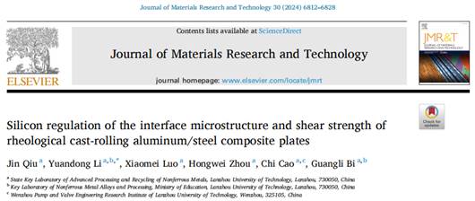 近日,材料科學(xué)與工程學(xué)院有色金屬新材料先進成形與表面改性科研團隊2020級博士邱謹為第一作者、導(dǎo)師李元東教授為通訊作者的論文《Rolling in-situ generation of metallurgical and mechanical bonding improves mechanical properties and synergistic deformation ability of semi-solid cast-rolled aluminum/steel composite plate》以及《Silicon regulation of the interface microstructure and shear strength of rheological cast-rolling aluminum/steel composite plates》分別在國際著名期刊《Journal of Materials Processing Tech.》(中科院一區(qū)Top期刊,JCR一區(qū),IF=6.7)以及《Journal of Materials Research and Technology》(中科院二區(qū)Top期刊,JCR一區(qū),IF=6.2)上發(fā)表,并獲授權(quán)國家發(fā)明專利1項(ZL202210172227.9),為新能源裝備、交通等領(lǐng)域的輕量化設(shè)計提供了關(guān)鍵技術(shù)支撐。