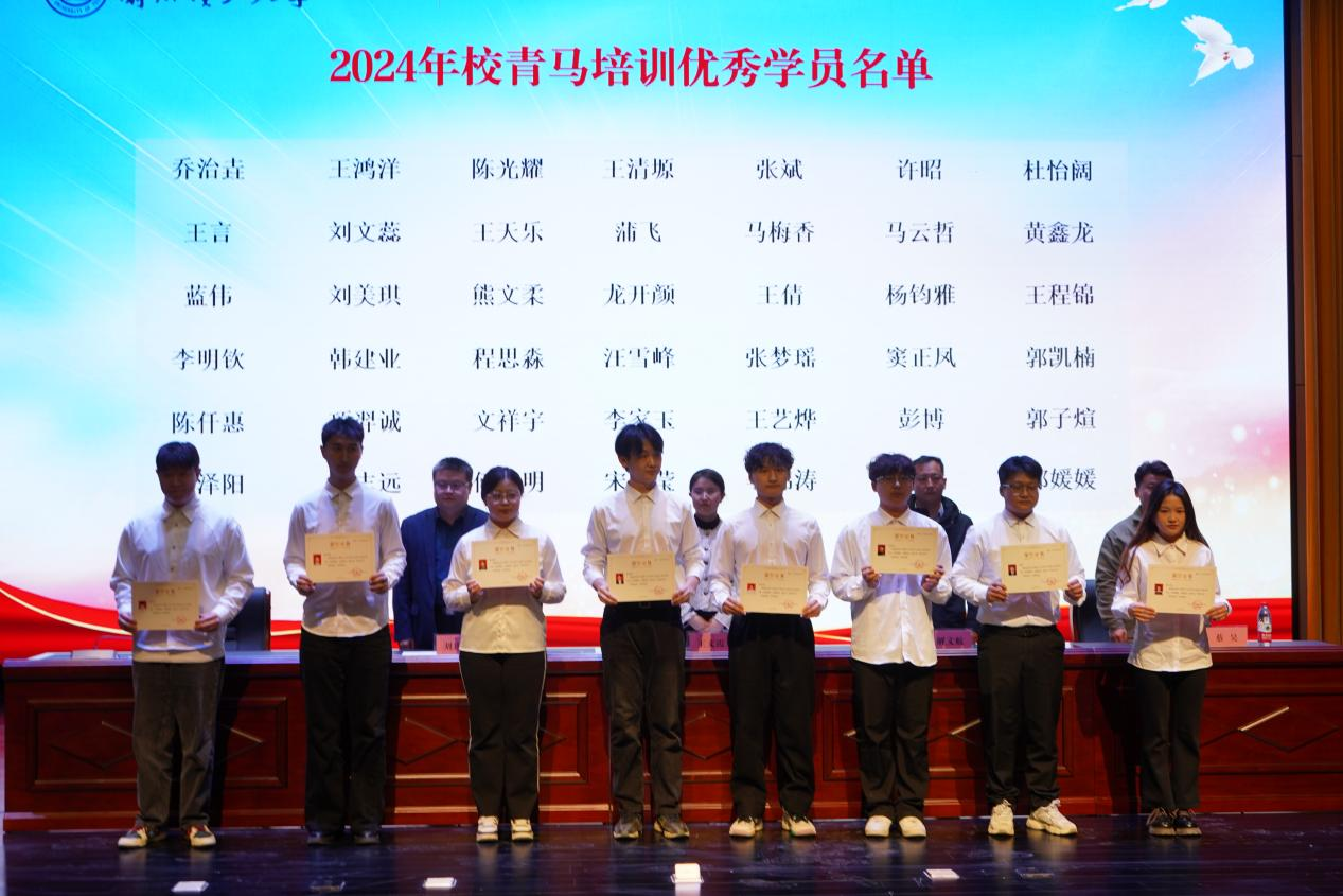 開班儀式上,王文霞寄語青馬班學員,希望學員們鑄魂強基,做理論武裝的先行者;扎根青年,做黨和青年的連心者;砥礪篤行,做知行合一的奮斗者。劉洪國為2025年校青馬班授旗,與會領導為2024年優秀學員代表頒發證書。2024年校青馬班優秀學員代表發言。