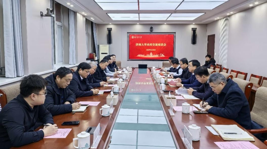 2025-12-1012月8日上午,濟(jì)南大學(xué)副校長(zhǎng)徐征和一行就研究生教育工作來(lái)我校交流座談。座談會(huì)由學(xué)校黨委常委、副校長(zhǎng)韓建平主持。