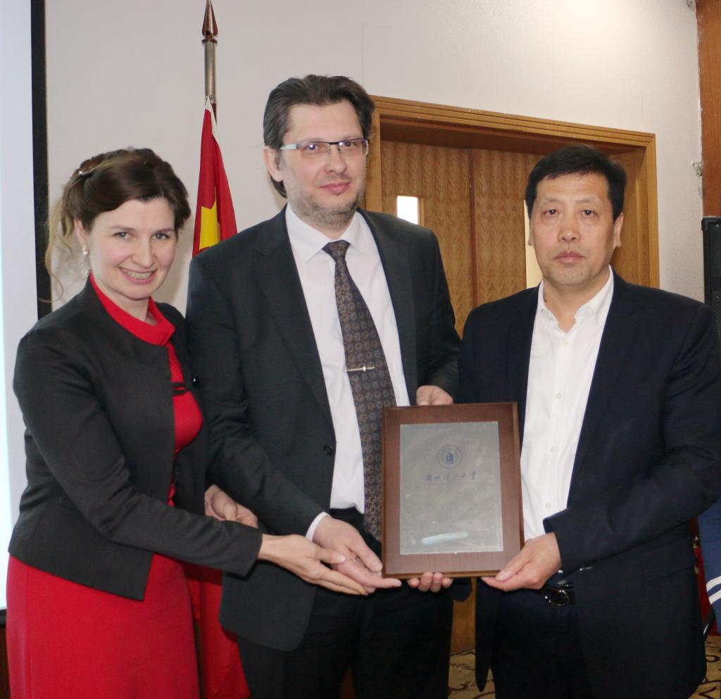芮執(zhí)元校長代表學(xué)校向茲諾巴·尼古拉先生贈送紀(jì)念品