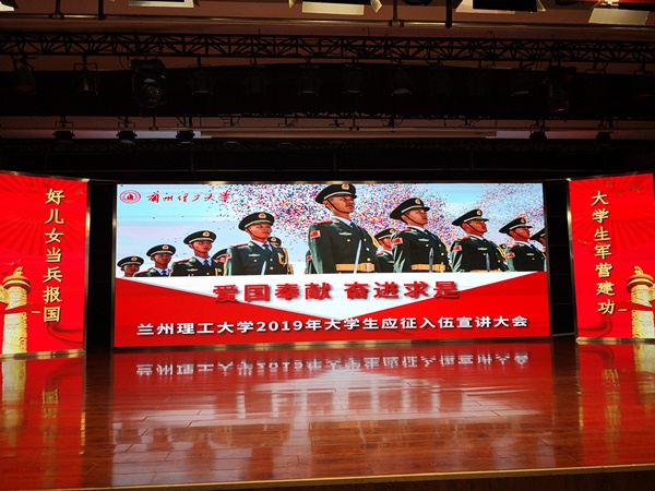 4月23日下午,學校在彭家坪校區大學生活動中心三樓召開2019年大學生應征入伍宣講會。蘭州市七里河區人武部政委胡開堯、蘭州理工大學黨委書記夏天東、蘭州理工大學黨委常委、副校長曾華輝等共500余人參加會議,大會由學生工作部(武裝部)部長孫偉國主持。