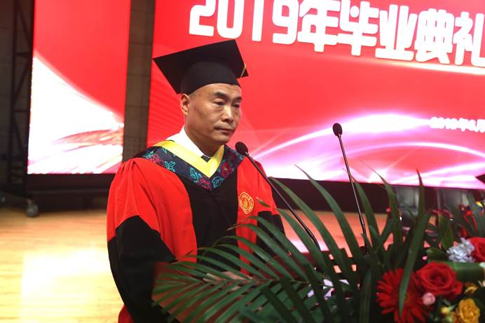 副校長俞樹榮宣讀《關(guān)于準(zhǔn)予研究生、本科生畢業(yè)的決定》