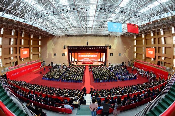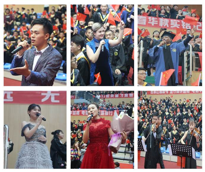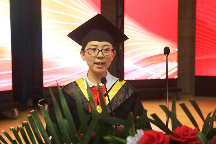 上午9:00,畢業(yè)典禮在雄壯的中華人民共和國國歌歌聲中開始,2019屆碩士畢業(yè)生何旭和本科畢業(yè)生李萬蓉主持畢業(yè)典禮。