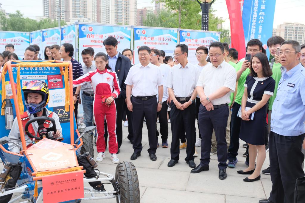 6月28日,由共青團蘭州理工大學委員會和蘭州理工大學校友總會主辦,共青團蘭州理工大學材料科學與工程學院委員會和材料科學與工程學院學生會承辦,為期兩天的“百年蘭理,科技之巔”2019蘭州理工大學師生校友科技成果展在蘭州理工大學體育館廣場順利展出。恰逢第十二屆“挑戰杯”甘肅省大學生課外學術科技作品競賽終審決賽開幕,甘肅省人民政府副秘書長賈寧,共青團甘肅省委副書記蔣小麗,甘肅省科協副主席馮永成,共青團甘肅省委副書記王廣慶,甘肅省教育廳科技處副處長閆新力,蘭州理工大學黨委書記夏天東,黨委常委、副校長俞樹榮、曾華輝,各參賽高校領導、代表,競賽合作方代表以及其他相關負責人共計2000余人參展。