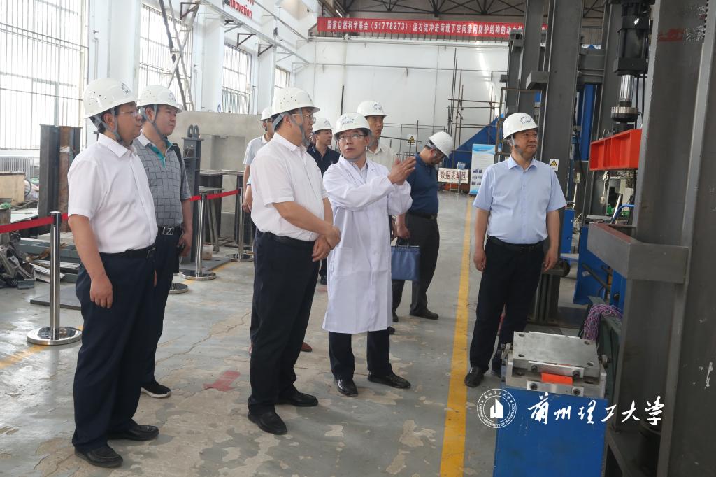史百戰一行先后到蘭工坪校區省部共建國家重點實驗室、結構工程專業實驗室、教育部有色冶金新裝備工程研究中心、風洞實驗室等地了解學校教育教學工作、科研成果轉化及服務地方經濟發展等情況。在聽取實驗室負責人分別對各自實驗室的發展現狀及取得的重大科研成果的介紹后,史百戰對學校科技工作表示肯定。