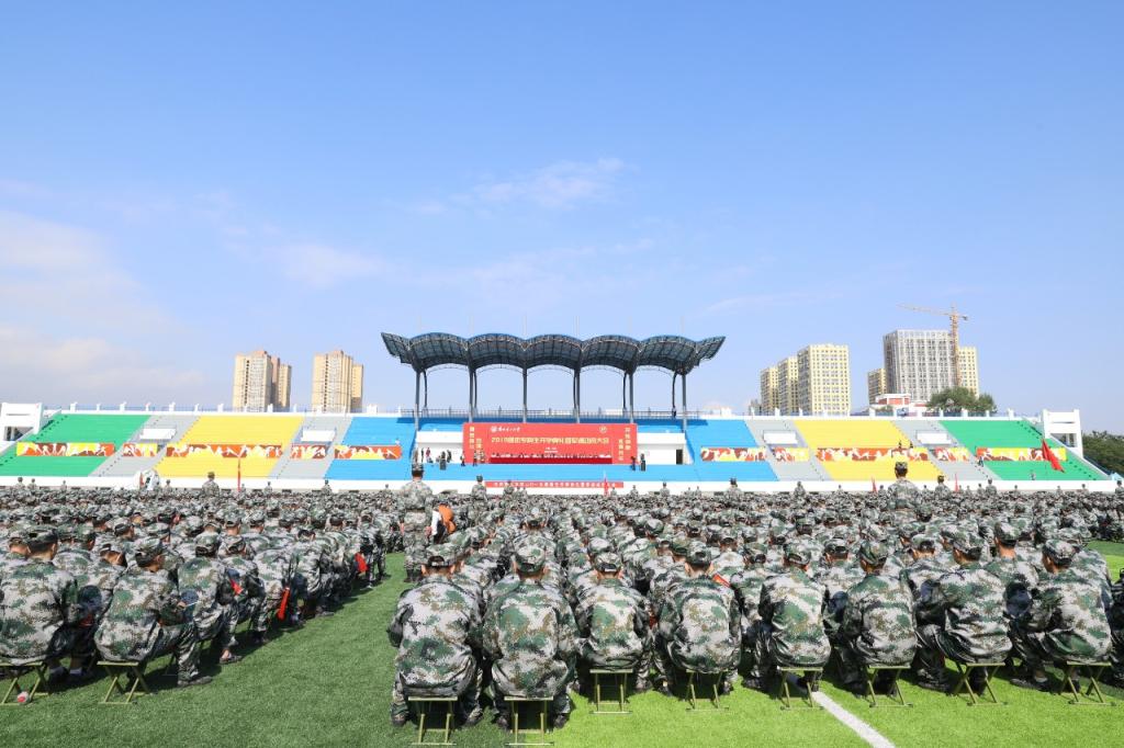 9月2日上午,蘭州理工大學2019級本專科生開學典禮暨軍訓動員大會在彭家坪校區田徑場舉行。31682部隊部隊長彭信平大校、副政委吳君中校,學校黨委副書記、校長芮執元,副校長韋堯兵、李仁年、王全進、曹潔、宋琦、陳志華、胡潔,中國人民解放軍駐蘭州理工大學后備軍官選拔培養辦公室主任縱雁大校,31682部隊政治工作部副主任,2019級新生軍訓團團長劉曉東和6060名新同學參加開學典禮。副校長曾華輝主持開學典禮。