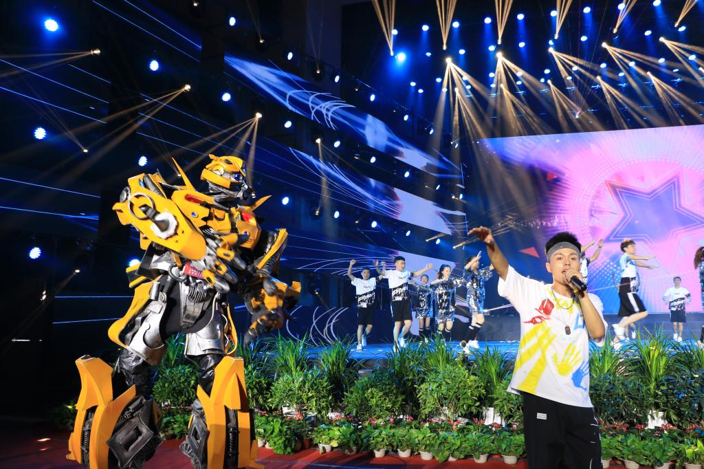 奮進(jìn)·砥礪前行篇展示了百年蘭理工把握時(shí)代機(jī)遇、艱苦奮斗、自強(qiáng)不息,奮勇前行,服務(wù)國家經(jīng)濟(jì)建設(shè)的精神風(fēng)貌。說唱舞蹈《蘭理繽紛》將各學(xué)院的專業(yè)特色用rap的形式唱響,拉丁舞、花式自行車、足球、輪滑悉數(shù)上演,機(jī)器人“擎天柱”一段科技感十足的舞蹈燃爆現(xiàn)場,巧妙的構(gòu)思引起陣陣歡呼,將晚會(huì)推向高潮。學(xué)校老年藝術(shù)團(tuán)與學(xué)生合唱團(tuán)帶來的大合唱《黃河兒女》,歌曲深情寬廣,旋律優(yōu)美綿長,唱出了黃河兒女的淳樸善良,有愛博大。