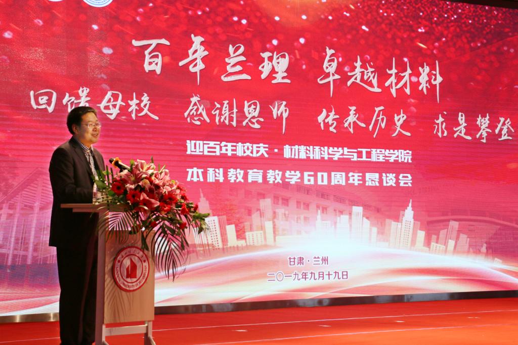 在新中國成立70周年、蘭州理工大學建校100周年之際,材料學院也迎來了本科教育教學的甲子。9月19日下午,材料學院舉辦了以“展示百年蘭理-卓越材料的輝煌、聚海內外校友回饋母校-感謝恩師、激勵在校教師和學生傳承歷史-求是攀登”為主題的本科教育教學60周年懇談會,陳劍虹教授、許廣濟教授等28名離退休老教師,劉霞等60多名校友受邀參加會議。學校黨委副書記丁虎生及曾經在學院工作過的老師應邀參加會議,材料學院全體教職工、近500名本碩博學生代表一起見證了這個美好時刻,會議由材料學院黨委書記李元東主持。
