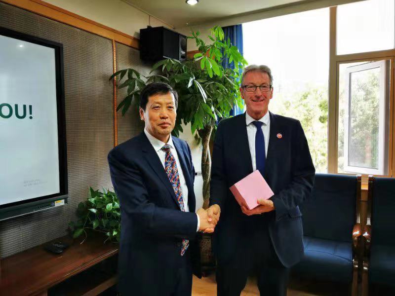 芮執(zhí)元感謝Brian GREEN來參加學(xué)校的百年校慶活動(dòng),希望進(jìn)一步提升兩校“2+2”國(guó)際班交換學(xué)生、科研研究等方面的合作層次和規(guī)模。