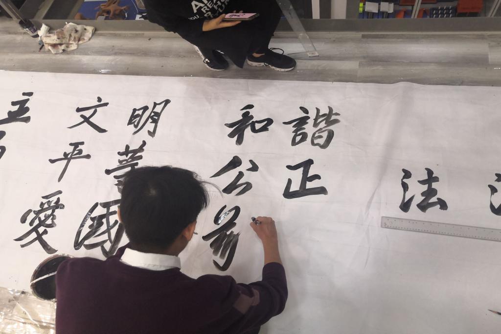 蘭理學(xué)子頌祖國(guó),攜手共繪中國(guó)夢(mèng)。9月26日上午,由蘭州理工大學(xué)學(xué)子繪制的“中國(guó)夢(mèng),我的夢(mèng)”百米主題畫卷在蘭工坪校區(qū)琢玉樓前展出。