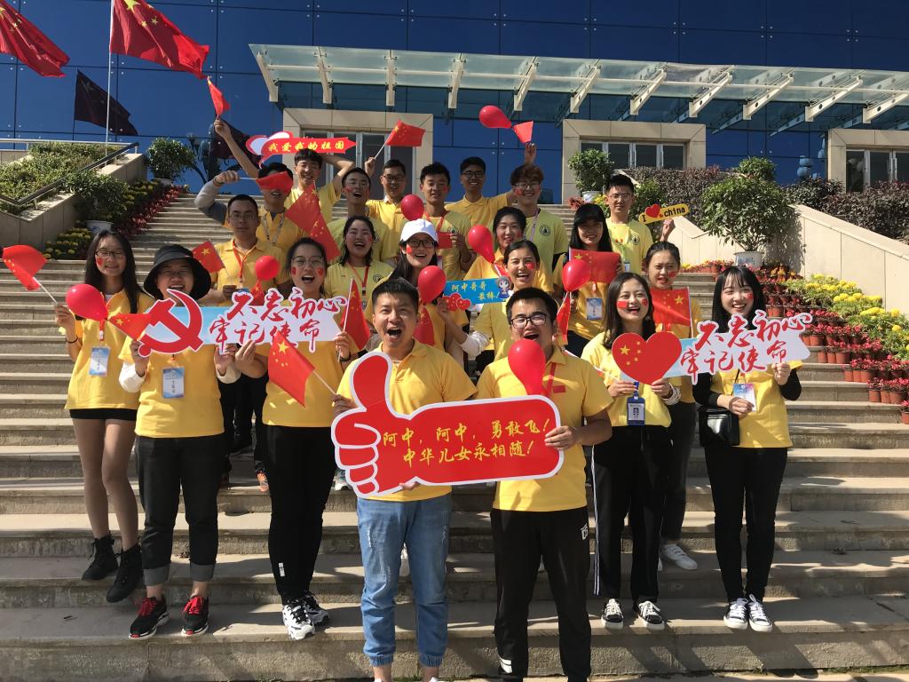 大家一起揮動手中的五星紅旗,以青春之名,齊聲告白,讓嘹亮的聲音在空中回蕩,讓愛國的情懷無限升華。