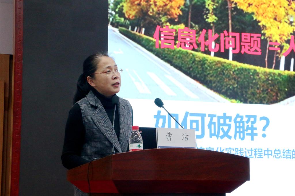 12日上午,學(xué)校黨委常委、副校長(zhǎng)曹潔作了題為《高質(zhì)量發(fā)展教育信息化驅(qū)動(dòng)我校高水平大學(xué)建設(shè)》的報(bào)告。報(bào)告從現(xiàn)狀剖析、問(wèn)題挑戰(zhàn)、應(yīng)對(duì)策略、未來(lái)構(gòu)想四個(gè)方面,對(duì)學(xué)校信息化建設(shè)工作進(jìn)行分享。報(bào)告指出,以習(xí)近平新時(shí)代中國(guó)特色社會(huì)主義思想為指導(dǎo),深入貫徹落實(shí)黨的十九大和全國(guó)教育大會(huì)精神,著眼人工智能時(shí)代教育現(xiàn)代化和教育變革,圍繞加快我校高水平大學(xué)建設(shè)的目標(biāo),按照完善機(jī)制、服務(wù)全局、深化應(yīng)用、融合創(chuàng)新的總體思路,將教育信息化作為我校教育教學(xué)發(fā)展的內(nèi)生變量,支撐引領(lǐng)教育現(xiàn)代化發(fā)展,積極推進(jìn)新時(shí)代“互聯(lián)網(wǎng)+教育”生態(tài)與教育重構(gòu),構(gòu)建信息時(shí)代基于大數(shù)據(jù)的現(xiàn)代化學(xué)校治理體系,探索破解教育治理改革發(fā)展中的重點(diǎn)和難點(diǎn)問(wèn)題,形成網(wǎng)絡(luò)化、數(shù)字化、智能化、個(gè)性化教育服務(wù)體系。