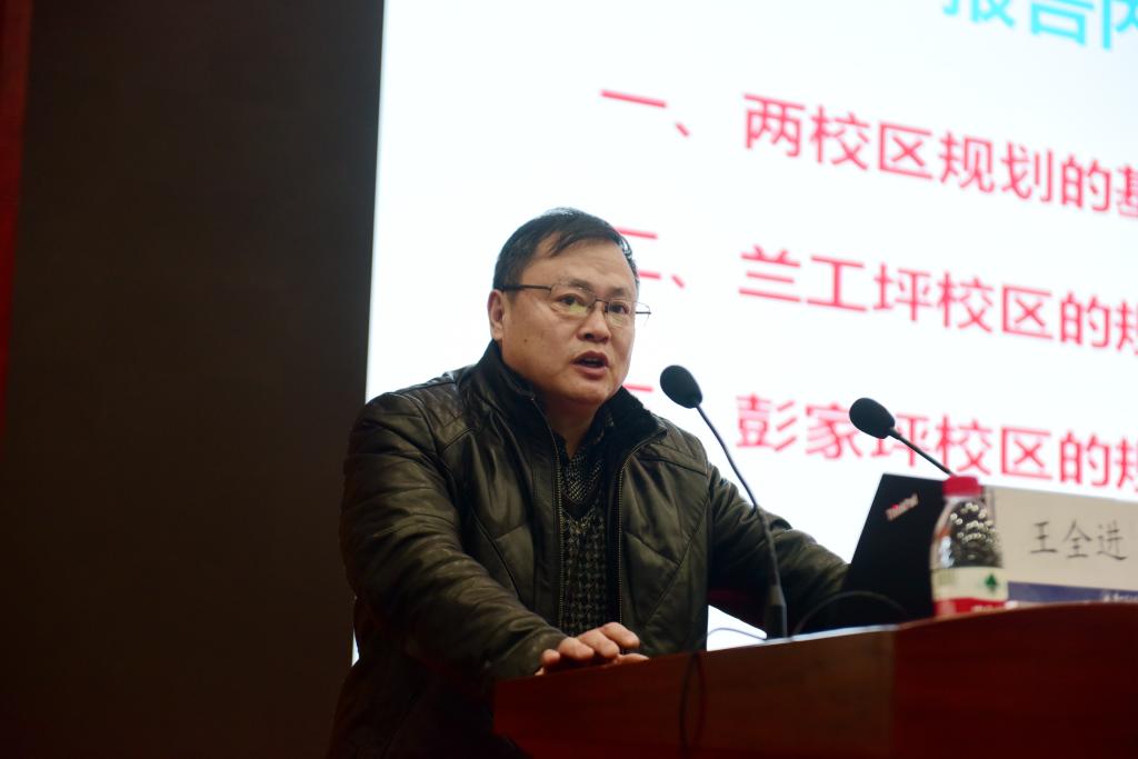 12日上午,學(xué)校黨委常委、副校長(zhǎng)王全進(jìn)作了題為《兩校區(qū)建設(shè)與規(guī)劃》的報(bào)告。報(bào)告圍繞兩校區(qū)規(guī)劃的基本考慮、蘭工坪校區(qū)的規(guī)劃與建設(shè)、彭家坪校區(qū)的規(guī)劃與建設(shè)、下一步的考慮和打算四個(gè)方面,對(duì)學(xué)校兩校區(qū)建設(shè)與規(guī)劃工作作了解讀。報(bào)告指出,大學(xué)在推進(jìn)文化育人過(guò)程中,要通過(guò)創(chuàng)設(shè)良好的文化環(huán)境,來(lái)潛移默化、循序漸進(jìn)地浸潤(rùn)人、感染人、熏陶人,從而達(dá)到“入芝蘭之室久而自芳”的效果。