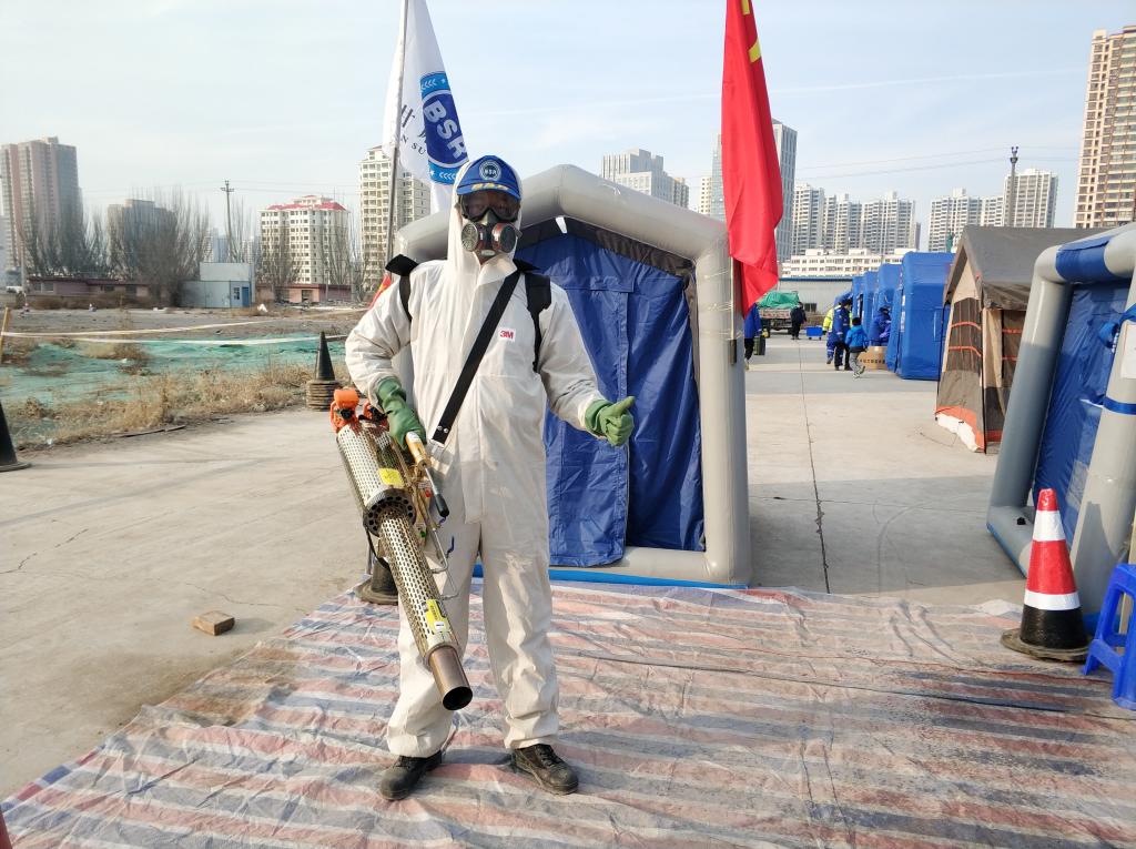 面對當(dāng)下來勢洶洶的疫情,史俊彥積極響應(yīng)《關(guān)于號召廣大志愿者、志愿服務(wù)組織積極有序參與疫情防控的倡議書》,從2月7日開始,他主動請纓參加了家鄉(xiāng)蘭州市城關(guān)區(qū)紅山萬和城附近的甘肅藍天救援隊疫情防控應(yīng)急消殺工作,成為了一名防疫青年志愿者。每天8:30準(zhǔn)時工作,主要工作內(nèi)容是對途徑的蘭州市內(nèi)的公共車輛(出租車,網(wǎng)約車,警車,醫(yī)院車輛等)進行消毒作業(yè),每天嚴(yán)格按照工作要求和查驗流程,對所有被消毒車輛駕乘人員進行體溫檢測,并認(rèn)真做好登記工作。每天站立在車旁,耐心地工作,時間一長,僵直的腳一步都挪不動了。因為涉及到醫(yī)院及其他公共車輛消毒,安全隱患較大,每天必須穿防護服,每天自我量體溫四次,消毒三次,面對消毒液的刺鼻、工作的艱辛,當(dāng)被問及為什么要主動請纓參加一線防疫工作時,史俊彥說:“退伍不褪色,國家有需要,一線戰(zhàn)‘疫’我責(zé)無旁貸!我只是做了一名普通老兵應(yīng)該做的,那就是為人民服務(wù)。”