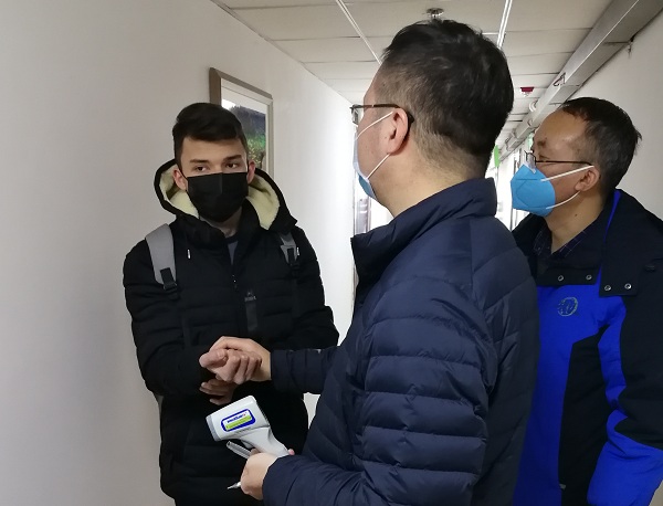 今年寒假,學(xué)校有233名國(guó)際學(xué)生在校,35名學(xué)生在境內(nèi)研學(xué)、旅游。防控伊始,學(xué)校將來(lái)華留學(xué)生作為在校學(xué)生疫情防控工作重點(diǎn),第一時(shí)間開展了方案部署和防控措施。校領(lǐng)導(dǎo)和防控領(lǐng)導(dǎo)小組成員單位負(fù)責(zé)人多次深入現(xiàn)場(chǎng),協(xié)調(diào)指導(dǎo)工作開展。國(guó)際教育學(xué)院班子成員時(shí)刻堅(jiān)守在防控第一線,第一時(shí)間組織購(gòu)買口罩、消毒液并及時(shí)下發(fā)給學(xué)生。學(xué)院外出教職工全部提前放棄休假返回學(xué)校,通過(guò)微信、電話全面開展疫情防護(hù)指導(dǎo)。國(guó)際學(xué)生輔導(dǎo)員在逐一開展國(guó)際學(xué)生行程信息排查通知的同時(shí),組織境內(nèi)返校學(xué)生嚴(yán)格隔離觀察。校醫(yī)院派發(fā)了體溫計(jì)、一次性手套等物資,并組織人員深入公寓開展診斷治療。后勤管理處組織人員對(duì)公寓開展全面消毒,并實(shí)行公寓封閉式管理。保衛(wèi)處嚴(yán)格實(shí)行國(guó)際學(xué)生“出入證”制度,嚴(yán)控國(guó)際學(xué)生出入校園……一項(xiàng)項(xiàng)嚴(yán)密有序的措施,一條條防護(hù)知識(shí),一段段疫情通報(bào),24小時(shí)不間斷的指導(dǎo)服務(wù),讓國(guó)際學(xué)生消除了恐慌、焦慮。