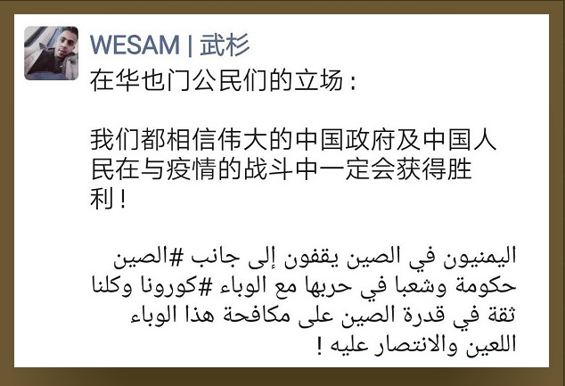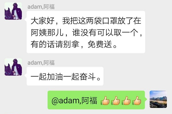 阿福,也門國(guó)際學(xué)生,他主動(dòng)貢獻(xiàn)出自己的口罩,放在公寓值班室,讓其他急需的國(guó)際學(xué)生免費(fèi)領(lǐng)取。他多次向?qū)W院提出請(qǐng)求擔(dān)任志愿者服務(wù)隊(duì)伍成員,為國(guó)際學(xué)生外出采購(gòu)生活用品和提供服務(wù)。