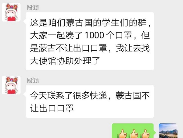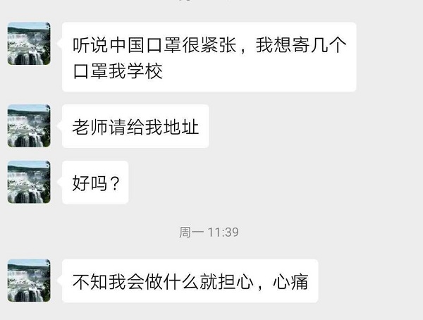 “我們捐贈(zèng)的口罩無(wú)法送達(dá),我們很難過(guò)。”這是塔吉克斯坦、蒙古國(guó)10名國(guó)際學(xué)生校友發(fā)來(lái)的微信,他們?cè)诘牡弥jP(guān)關(guān)閉和物流不通致使物品無(wú)法郵寄,捐款建議又被國(guó)際教育學(xué)院婉拒后,通過(guò)在其他國(guó)家的校友購(gòu)買口罩寄往學(xué)校。“冬天即將過(guò)去,春天很快來(lái)臨,祝福母校、祝福中國(guó)!”這是他們?cè)卩]寄物品上專門貼上的話。
