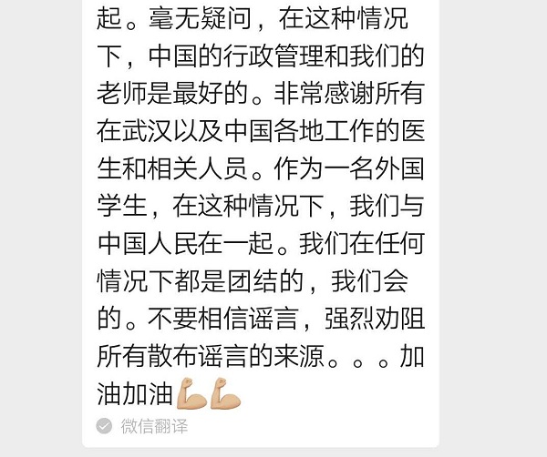 國(guó)際學(xué)生表達(dá)抗“疫”信心
