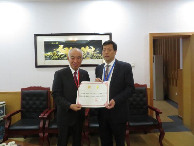 校長芮執元為Akira Wada院士頒發學校特聘客座教授聘書
