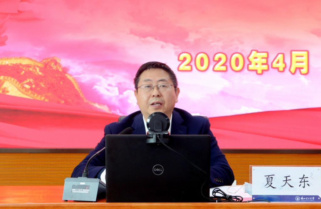 學校黨委書記夏天東就學習貫徹黨的十九屆四中全會和十九屆中央紀委四次全會精神,全面落實黨中央出臺的《黨委(黨組)落實全面從嚴治黨主體責任規定》,推動新時代全面從嚴治黨向縱深發展,決戰決勝脫貧攻堅以及主題教育整改各項工作提出要求。他表示,學校建設特色鮮明的高水平大學藍圖已經繪就,越是在發展的關鍵時期,越要深刻認識到全面從嚴治黨沒有休止符,更沒有放松時。要深刻認識落實全面從嚴治黨主體責任的重大意義,準確理解全面從嚴治黨的內涵要義,落實全面從嚴治黨主體責任的關鍵著力點。切實擔負起全面從嚴治黨主體責任,堅定不移把“嚴”的主基調長期堅持下去,著力把全面從嚴治黨主體責任落實到立德樹人根本任務上來、落實到貫徹踐行內涵式發展上來、落實到提升學校治理能力和治理水平現代化上來,助推高水平大學建設實現新發展,為教育強國做出新貢獻。