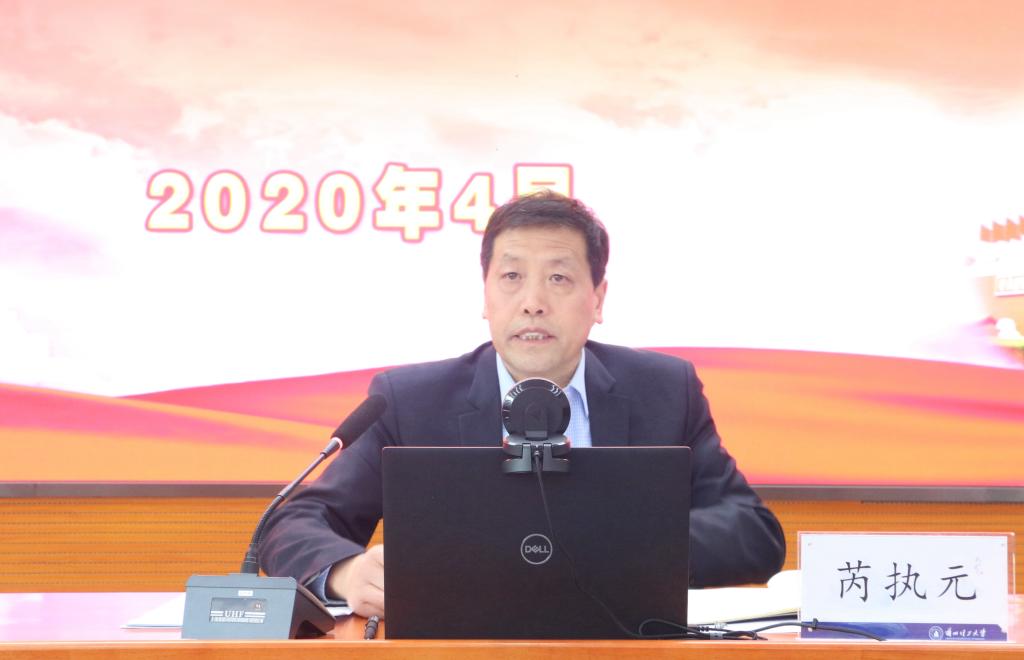 4月7日上午,學校2020年全面從嚴治黨工作會暨脫貧攻堅和主題教育整改推進會議在蘭工坪校區圖書館二樓報告廳召開。全體校領導、各單位(部門)黨政主要負責人在主會場參會,副處級干部通過隴政釘視頻會議參加。會議由校黨委副書記、校長芮執元主持。