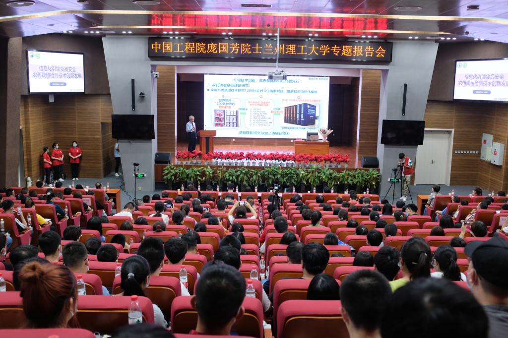 8月25日下午,蘭州理工大學彭家坪校區圖書館一樓106報告廳內座無虛席。應蘭州理工大學生命科學與工程學院邀請,中國工程院院士龐國芳來校作了題為“信息化引領食品安全農藥殘留檢測技術創新發展”的專題報告。報告會由學校黨委常委、副校長俞樹榮主持,來自學校生命科學與工程學院、石油化工學院師生和蘭州市食品藥品檢驗所、甘肅省產品質量監督檢驗研究院、甘肅省藥監院、中科院蘭州化物所、蘭州牧藥所等單位干部職工聆聽了學術報告。