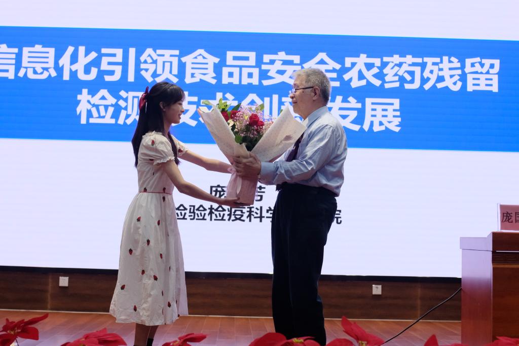 報告結束后,俞樹榮代表學校為龐國芳院士贈送紀念品。