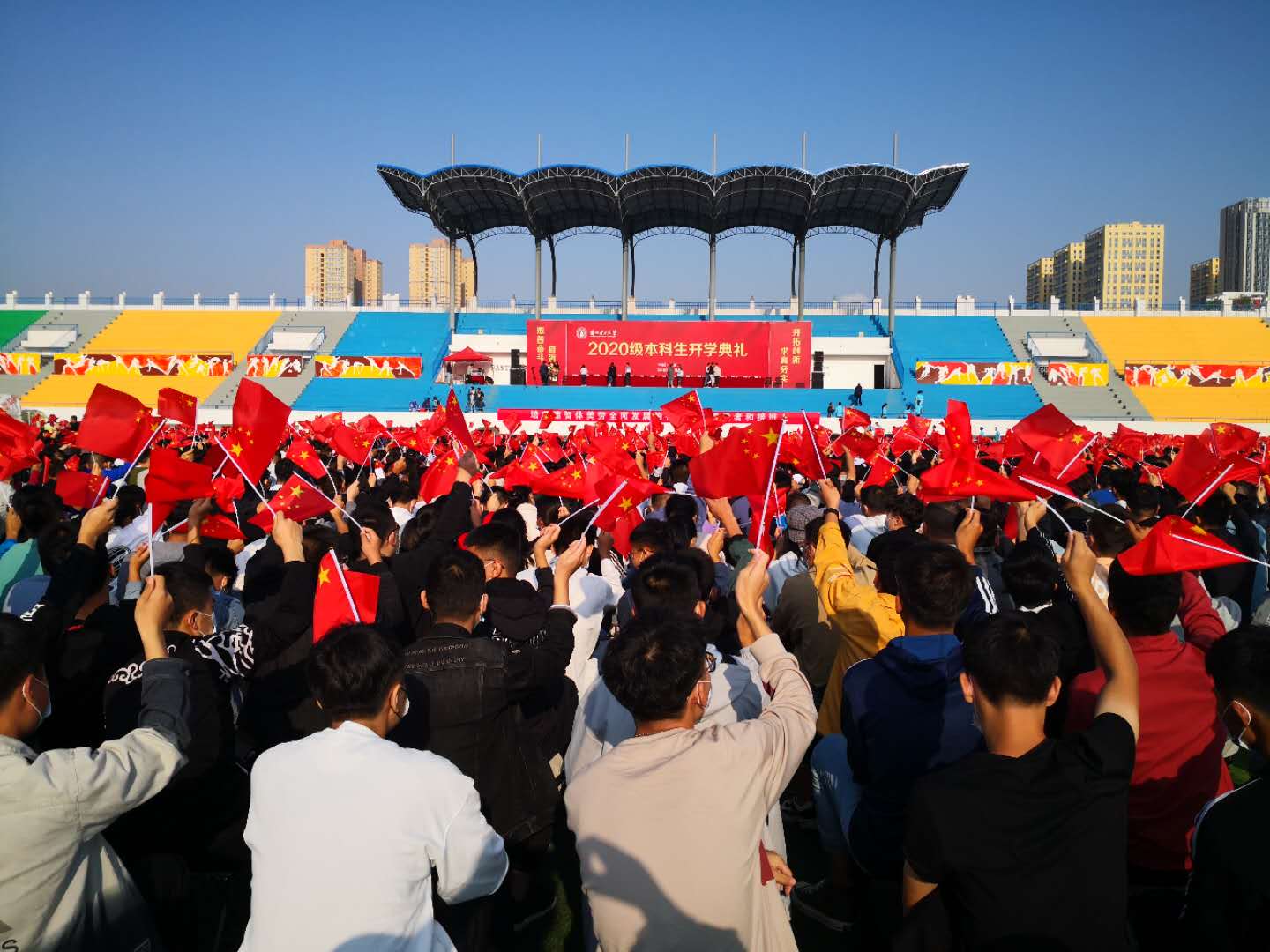 紅柳葉色新,隴原秋意濃。9月10日上午,蘭州理工大學2020級本科生開學典禮在彭家坪校區田徑場和蘭工坪校區籃球場(電子屏同步直播)舉行。學校黨委副書記、校長芮執元,黨委副書記丁虎生,副校長李仁年,黨委常委、副校長王全進,黨委常委、副校長曹潔,黨委常委、副校長曾華輝,黨委常委、副校長宋琦,黨委常委、組織部部長王佰成及相關職能部門和各二級學院領導、老師、全體2020級本科生參加了開學典禮。開學典禮由曾華輝主持。